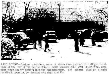 19, 1947 in Fairfax. One newspaper stated that the robbery was at the Fairfax Tavern (where the pony keg and Baker's Pub once were) and another at the Fairfax Club (which was in a building behind the tavern, where the Church of God was later located). I haven't yet determined the relationship between these two establishments, other than there was gambling at both. Newspaper articles reported on a location "in the rear" of Fairfax Tavern, so it is unclear whether the robbery occurred within the tavern itself or in the building behind the tavern. Although it appears that there was gambling in some form at Fairfax Tavern, that the robbery and a lot of the gambling action were most likely at the Fairfax Club.